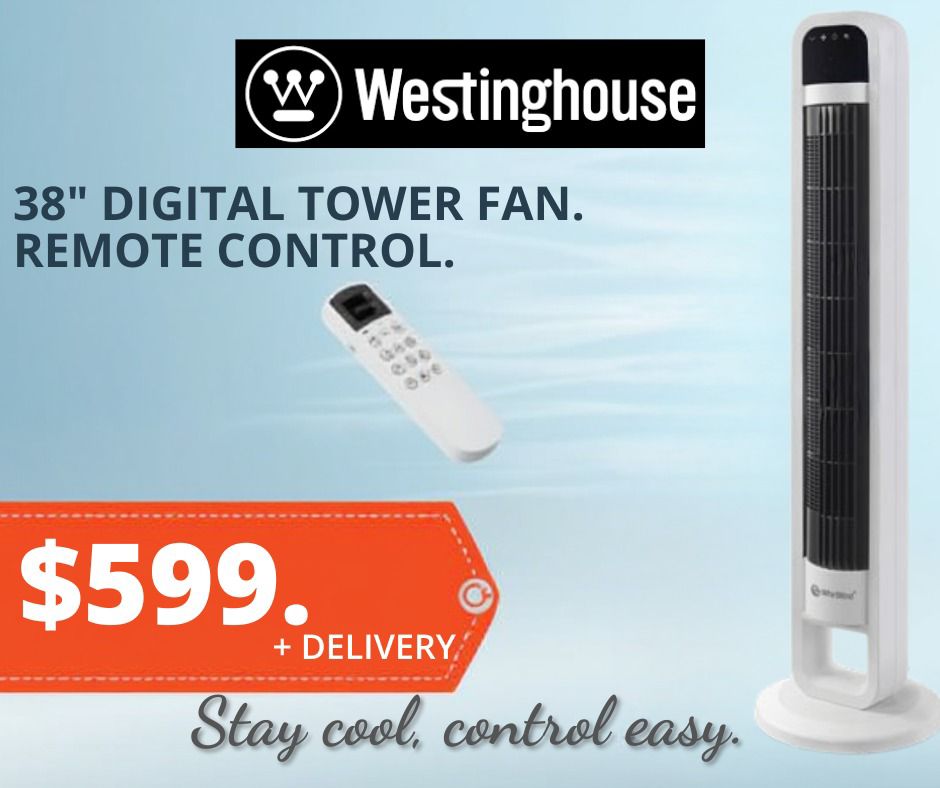 Sleek 38-inch tower with a compact footprint, perfect for bedrooms, living rooms, or offices, and designed to complement modern interiors.