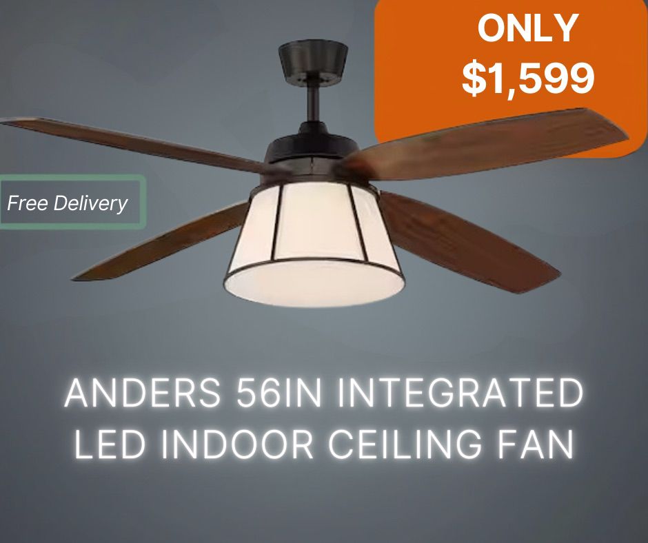 The Anders 56-inch Integrated LED Indoor Ceiling Fan combines modern style with powerful performance. It features durable wooden blades and a built-in LED light, providing both bright lighting and efficient air circulation. Perfect for living rooms, bedrooms, and indoor spaces, this fan offers quiet operation, energy efficiency, and a stylish design to enhance any home.
