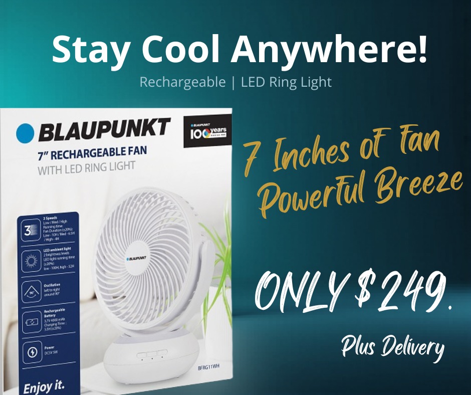 This compact rechargeable fan with built-in LED ring light keeps you cool and well-lit wherever you go.